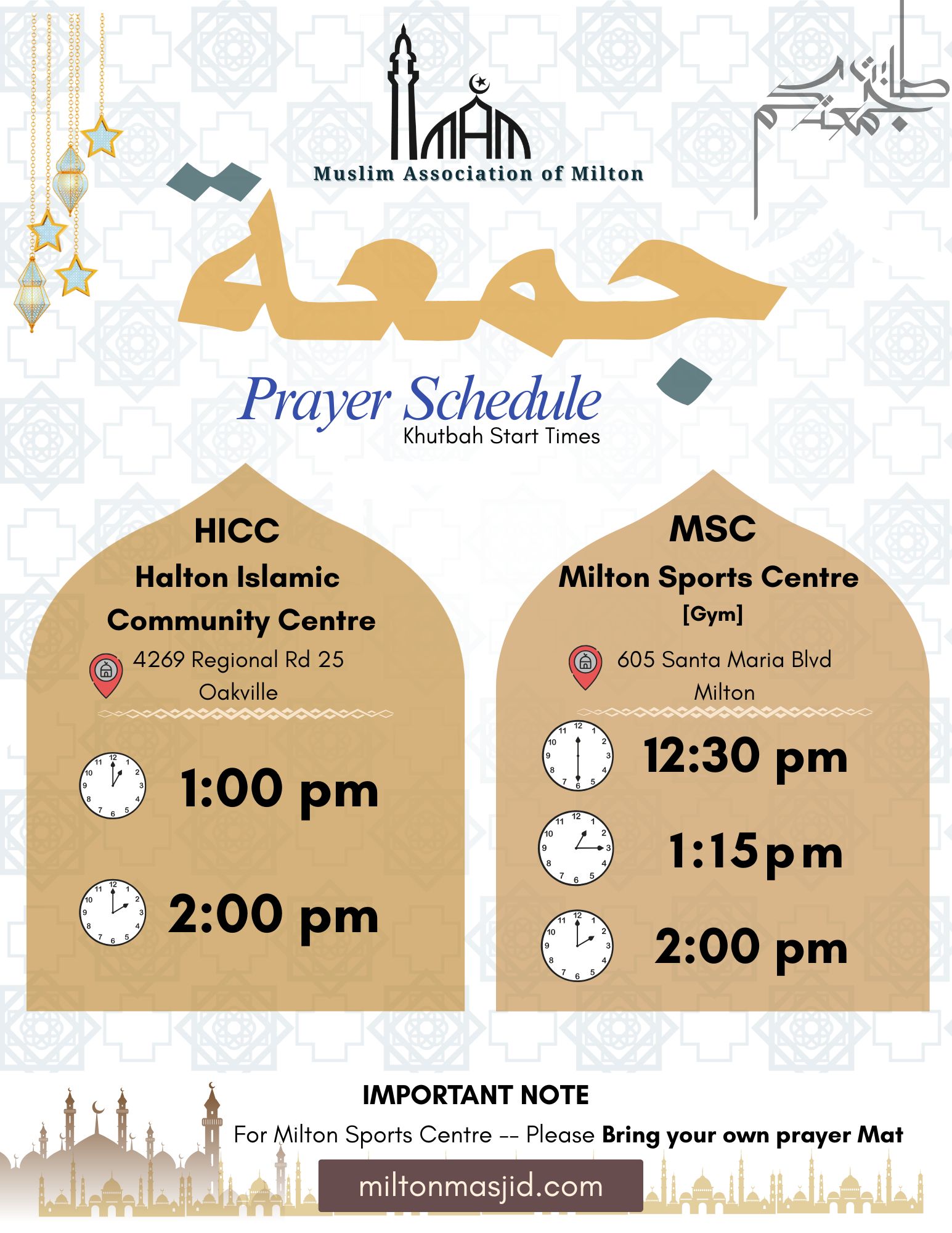 Juma Prayers being held at Milton Sports Centre and other locations.